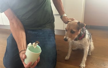 ”Die Tasse mit meinem Hund Mica ist wunderschön! Jedes Mal, wenn meine Nachbarin vorbeikommt, um mit Mica spazieren zu gehen, möchte sie die Tasse erneut bestaunen.”